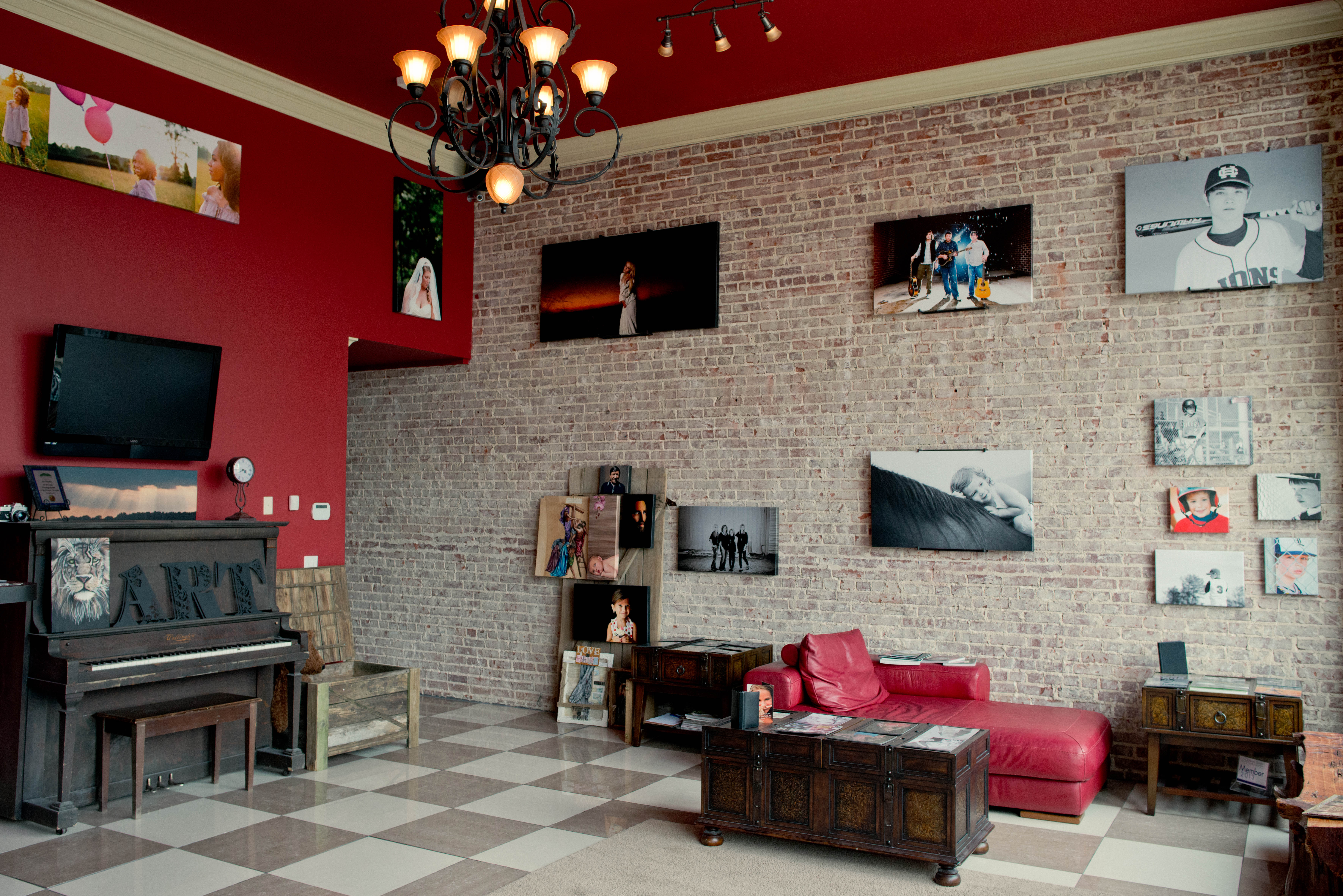 On the inside of the studio, Thomason showcases canvas gallery wraps printed on either LexJet Sunset Reserve Bright Matte Canvas or LexJet Sunset Production Matte Canvas, and Photo Tex for wall murals.