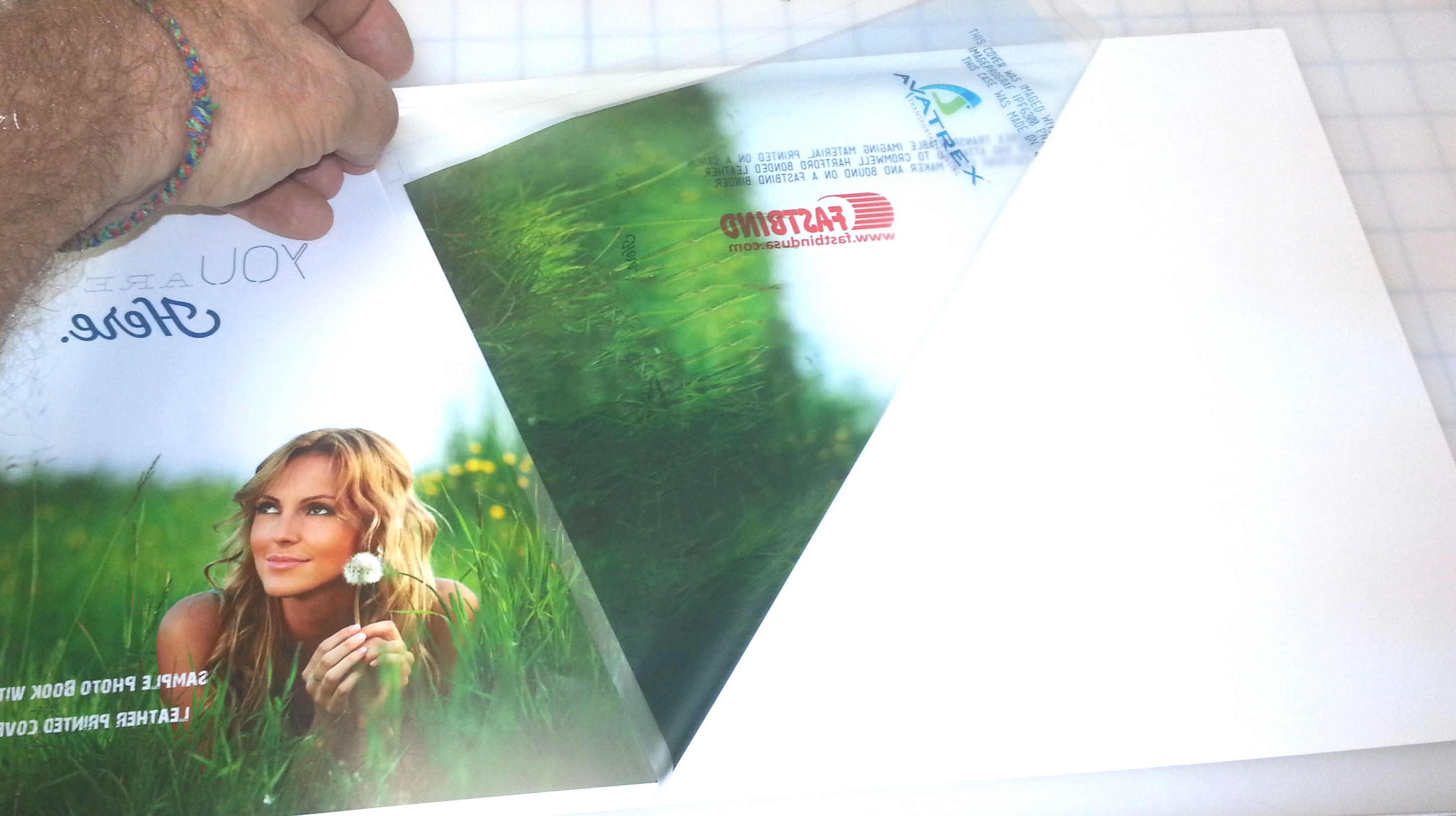 “CoverFilm encapsulates the ink between the substrate surface and the outer layer, protecting the ink and substrate from the elements without the need to add an additional layer of lamination,” explains Kent Dalzell of FastbindUSA. “The result is a custom print that keeps the original surface texture, but is durable enough to make photo book or photo album hard case covers.”