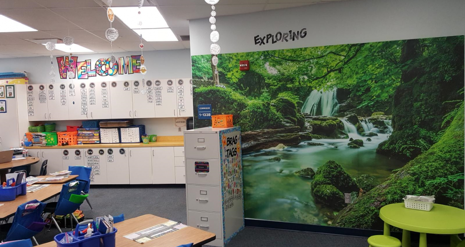 When Ashton Elementary School teacher Rachel Montisano wanted to liven up her classroom while simultaneously providing an interactive educational environment, she reached out to LexJet for some ideas. Michael Clementi, LexJet’s in-house printing guru, recommended that she use LexJet Print-N-Stick Fabric.