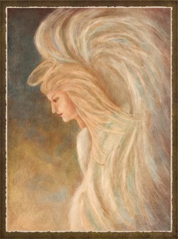 She was watching the Celtic Woman Christmas Special when she was hit with the inspiration for her image. “They sang ‘It Came Upon a Midnight Clear,’ and there’s a verse in there that says ‘Angels bending near the earth,’” she says. “And I had this idea immediately, and sketched out the before image of this and created the final bit by bit.”