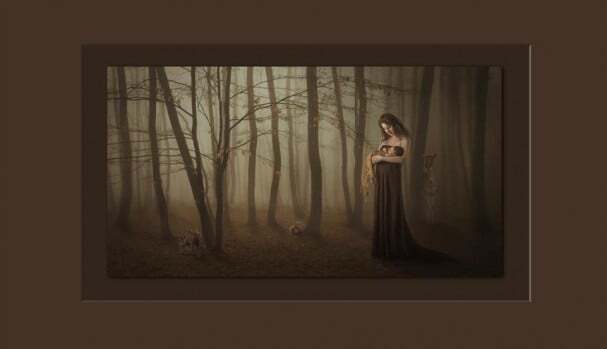 The composition was created in Photoshop and finished in Corel Painter. Kelleher had to match the lighting from the studio capture of the mother and son featured in the image with the forest and woodland creature scene she created around them.