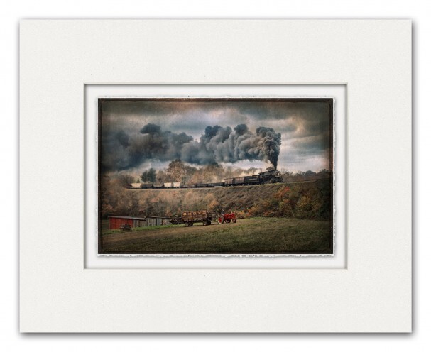 In the case of this LexJet Sunset Award-winning print entitled It Was the Best of Times, Howard and a group of photographers, videographers and painters gathered after Howard and Carl Franz of Western Maryland Railroad (WMRR) set up this shot of an old steam-driven Western Maryland locomotive hauling freight. Franz rented the railroad for the day, coordinated the volunteers who cleared some brush out of the foreground, and helped set up the shot.