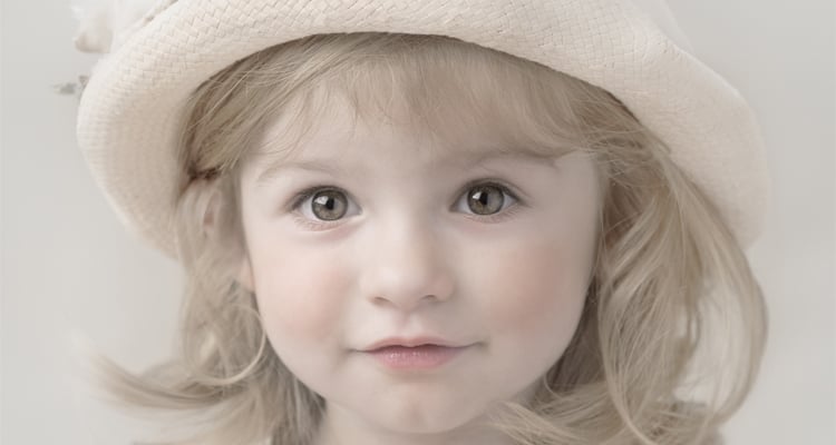 Her portrait of this little girl is both precious and impressive in technique. Joliat adjusted both the lighting and complexion of the girl, painting her cheeks and lips to create the effect of a little doll. “When I think back to that session, her personality was very observant. She watched things,” she says, “Maybe that’s why her eyes came out so much in the picture, because she was a curious little girl.”