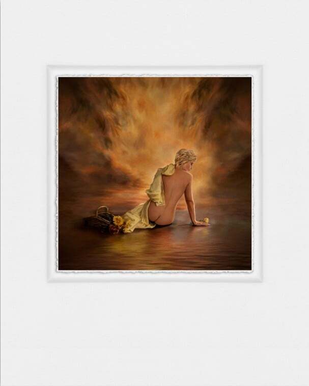 “She posed and let me take that picture for competition. It was shot in my studio with a canvas backdrop. After I shot it I edited in Photoshop and took it into Corel Painter and painted it. The flowers and the basket were not in the image; I composited them in. She had bent her leg where the bottom of the foot was showing and I didn’t like that,” explains Willis.