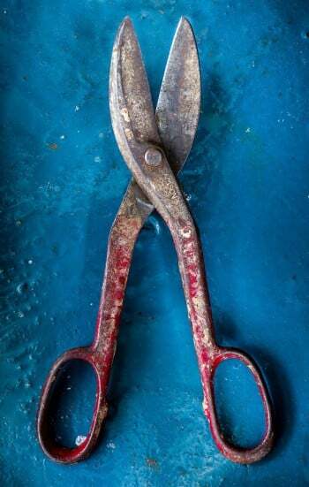 “I’m a collector of tools and I was pawing through some old tools when I came across these metal snipping shears that I inherited from my wife’s uncle,” he explains. “I would never dream of using it, but it had good color, particularly in contrast to the basement floor, which is blue. The combination appealed to me.”