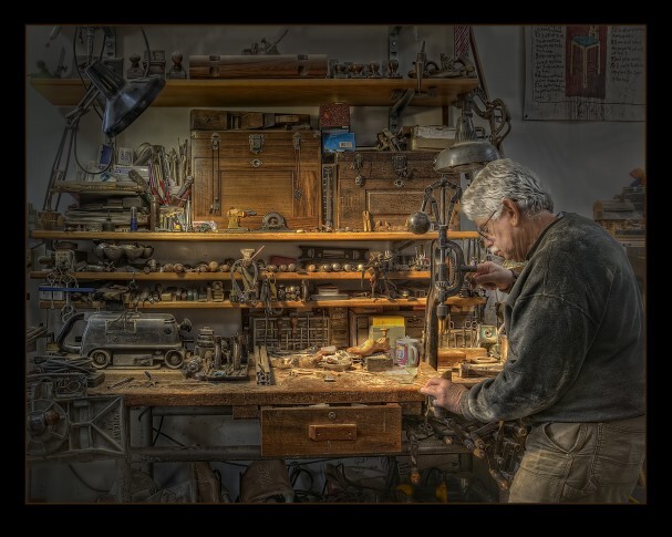 Then, the three exposures are blended in Photomatix HDR software and with a little work in Nik Color Efex Pro the masterpiece is complete. The subject of the photo, Steve Cohen, is a retired woodshop teacher in Woodstock, N.Y. (where Jeffery is based).