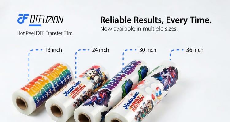 Fortunately, as DTF printing grows in demand, new products are emerging to address common problems. For your film issues, DTFuzion™ Hot Peel DTF Transfer Film is designed to solve typical frustrations with DTF films, providing consistent peel performance, sharp detail, and dependable wash durability.
